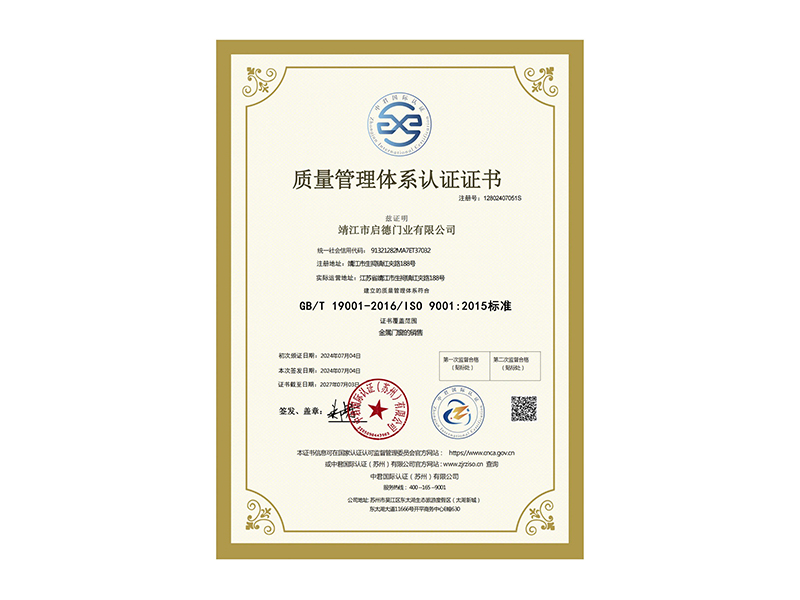 質量管理體系認證證書