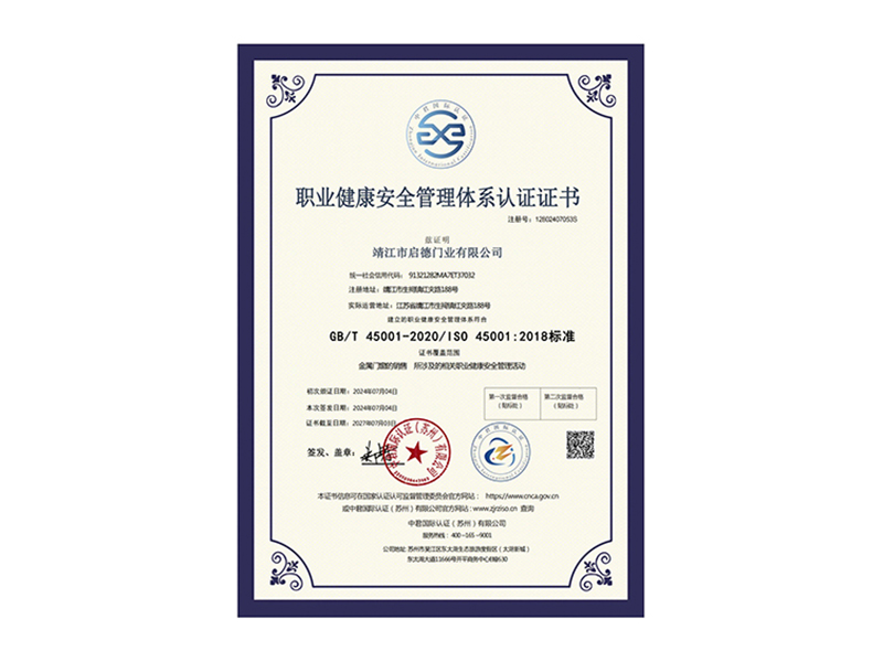 職業健康安全管理體系認證證書