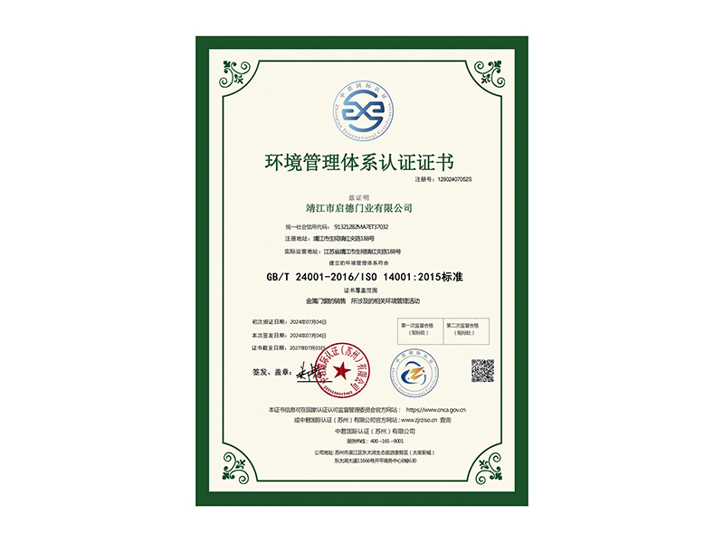 環境管理體系認證證書